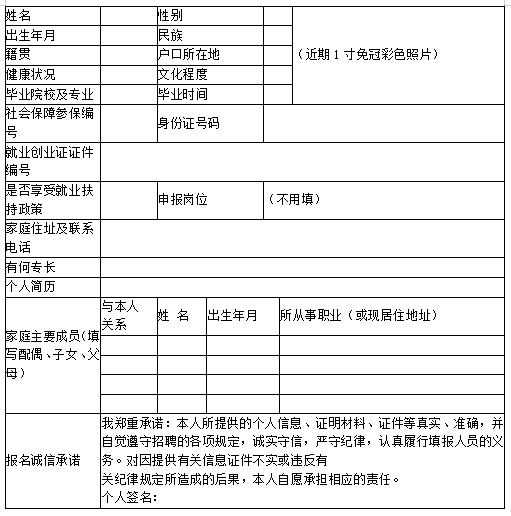 昌寧縣政務服務管理局公益性人員招聘報名表