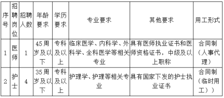 醫(yī)師崗位用工形式為合同制(人事代理)、同工同酬待遇。護士崗位用工形式為合同制(臨時用工),月薪2000元。