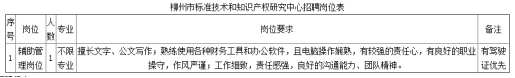 因工作需要,柳州市標準技術(shù)和知識產(chǎn)權(quán)研究中心現(xiàn)面向社會公開招聘1名編外聘用人員,現(xiàn)將有關(guān)事項公告如下: