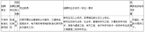 根據(jù)《寧波市事業(yè)單位公開招聘工作人員實施辦法》和《寧波市市場監(jiān)督管理局局屬事業(yè)單位公開招聘工作人員實施細則》有關規(guī)定,寧波市市場監(jiān)督管理局局屬事業(yè)單位寧波市標準化研究院決定面向全國公開招聘事業(yè)編制工作人員1名,F(xiàn)就有關事項公告如下:
