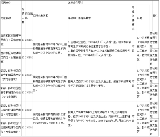 西華大學2023年4月公開考試招聘事業(yè)編制輔導員崗位和條件要求一覽表