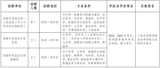 成都市雙流區(qū)“蓉漂人才薈”走進北京大學考核招聘10名衛(wèi)生專業(yè)技術(shù)人員崗位表
