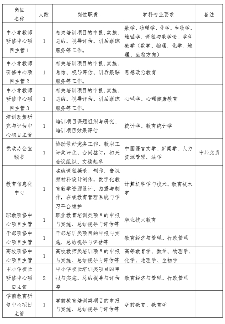陜西師范大學教師干部培訓學院是專門從事教師干部職后教育的辦學機構(gòu)。根據(jù)學院工作需要,現(xiàn)面向校內(nèi)外公開招聘工作人員12名,具體情況公告如下: