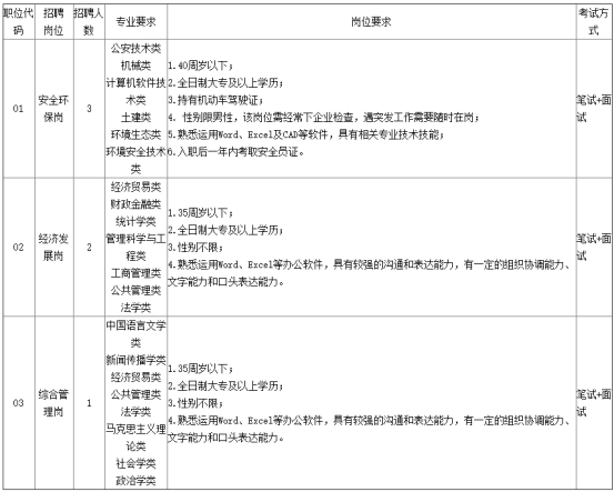 此次招聘人數(shù)6名,其中安全環(huán)保崗3人,經(jīng)濟發(fā)展崗2人,綜合管理崗1人。