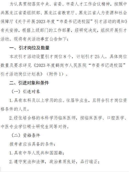 2023年黑龍江鶴崗市人民醫(yī)院引進人才才公告【25人】