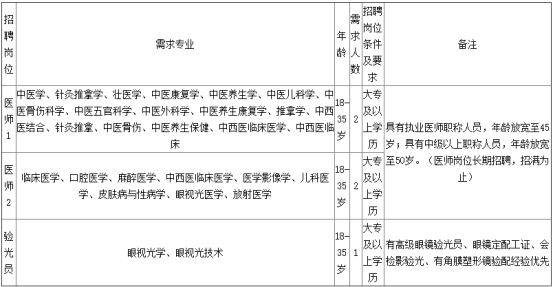 為進一步促進醫(yī)院發(fā)展,根據(jù)醫(yī)院發(fā)展需要,決定面向社會招聘醫(yī)師、驗光員共5人,現(xiàn)將有關(guān)事項公告如下: