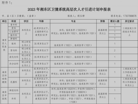 附件:1.2023年度湘東區(qū)衛(wèi)健系統(tǒng)高層次人才引進崗位表
