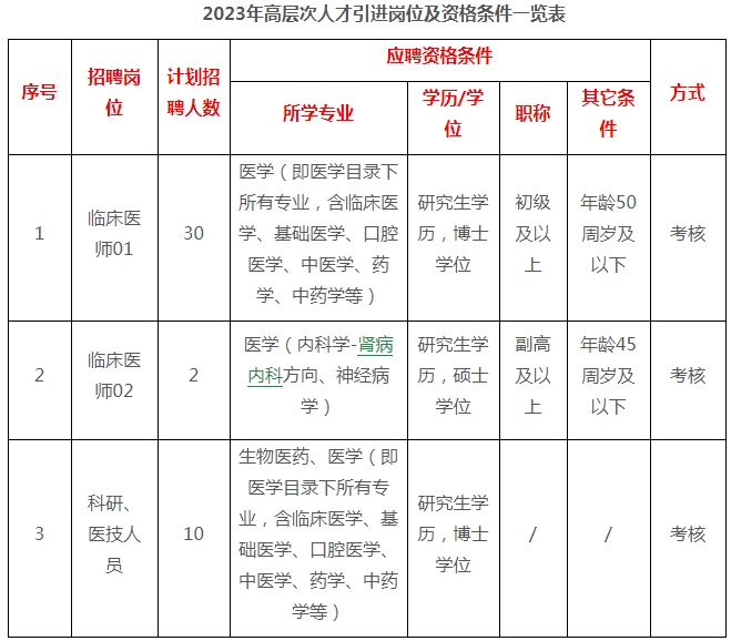 (二)所有應(yīng)聘者需在2023年9月30日前取得招聘崗位要求的畢業(yè)證、學(xué)位證、醫(yī)師資格證等資質(zhì)證書。國(境)外留學(xué)人員須于2023年9月30日前取得教育部中國留學(xué)服務(wù)中心境外學(xué)歷、學(xué)位認(rèn)證證書。