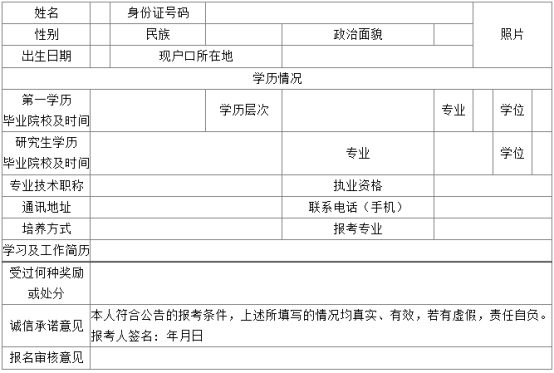 淮南市市屬公立醫(yī)院公開(kāi)招聘碩士研究生報(bào)名表