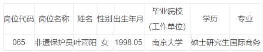 根據(jù)《蘇州市2023年市屬事業(yè)單位公開(kāi)招聘工作人員公告》,經(jīng)過(guò)筆試、面試、體檢和考核合格,擬錄用以下壹名同志,現(xiàn)公示如下: