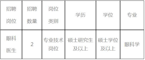 1.碩士研究生及以上學歷(本科階段學歷為普通高中起點統(tǒng)招全日制本科),專業(yè)為眼科學(本科專業(yè)與研究生專業(yè)相同或相近)。