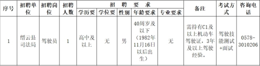 縉云縣司法局面向社會(huì)公開(kāi)招聘駕駛員1名,具體如下↓