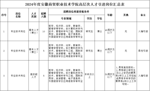 附件1:2024年度安徽商貿(mào)職業(yè)技術(shù)學(xué)院高層次人才引進崗位匯總表.xls