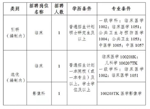 2.選優(yōu)崗位:普通招生計劃一本院校(或一本專業(yè))及以上學(xué)歷2022年、2023年、2024年優(yōu)秀畢業(yè)生或2022年、2023年、2024年取得住院醫(yī)師規(guī)范化培訓(xùn)合格證,未在編在崗,在校期間總體成績優(yōu)異,所學(xué)專業(yè)必修科目無掛科。