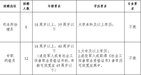 根據(jù)《宿遷市司法所協(xié)理員管理辦法》和《宿遷市城鄉(xiāng)網(wǎng)格化服務(wù)管理實(shí)施細(xì)則》文件精神,宿遷市湖濱新區(qū)決定以勞務(wù)派遣方式向社會(huì)公開招聘8名司法所協(xié)理員和12名專職網(wǎng)格員,F(xiàn)將有關(guān)事項(xiàng)公告如下: