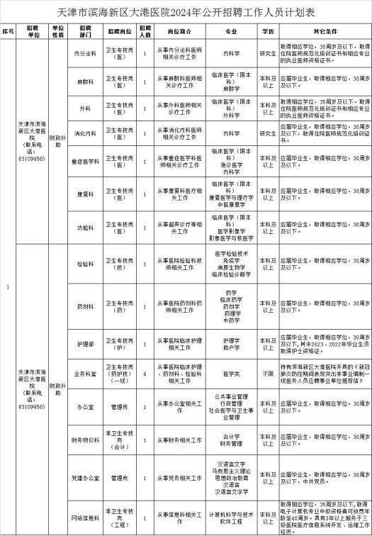 附件:天津市濱海新區(qū)大港醫(yī)院2024年公開招聘工作人員計(jì)劃表