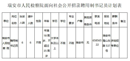 (1)瑞安市人民檢察院聘用制書記員招錄報(bào)名表(報(bào)名表用A4紙打印,并貼上近期藍(lán)底彩色免冠1寸照片1張);