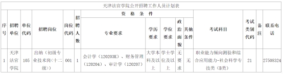 附件:《天津法官學院公開招聘工作人員計劃表》