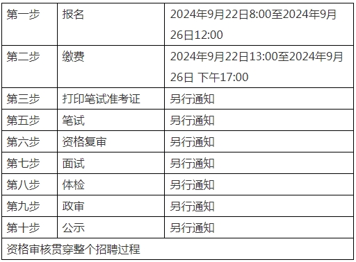本次招聘采取統(tǒng)一公開招聘方式。按照制定招聘方案、發(fā)布招聘公告、報(bào)名及資格審查、招聘考試(筆試、面試)、體檢、考核政審、擬聘人員公示、聘用等步驟進(jìn)行。