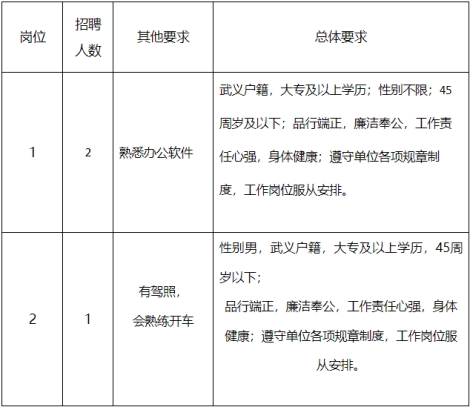 3.報(bào)名需提交材料:報(bào)名表、身份證復(fù)印件、學(xué)歷證書各一份,崗位二還需提交駕駛證復(fù)印件一份。