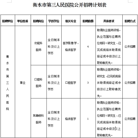 (一)學(xué)歷條件詳見附件《衡水市第三人民醫(yī)院公開招聘計(jì)劃表》。