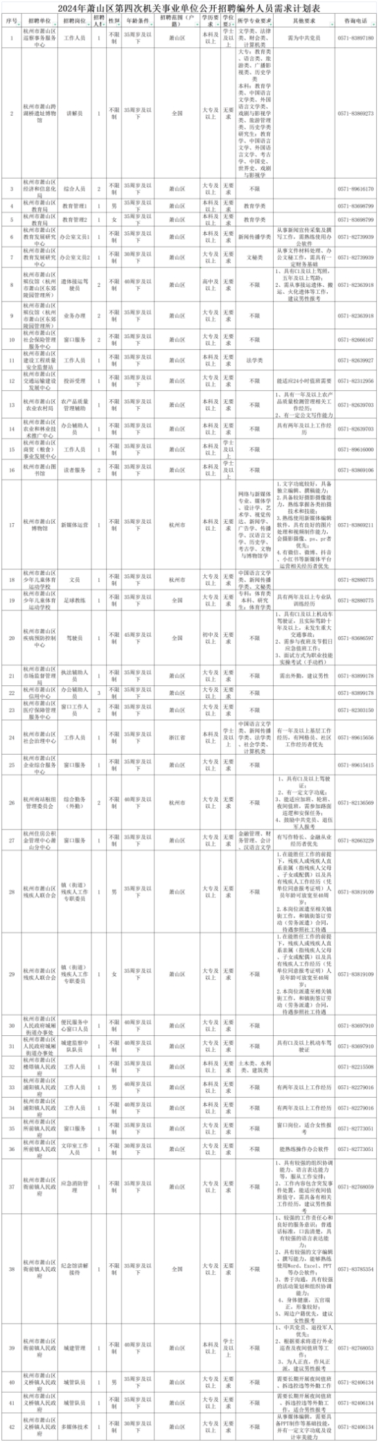 附件:2024年蕭山區(qū)第四次公開招聘編外人員需求計(jì)劃表